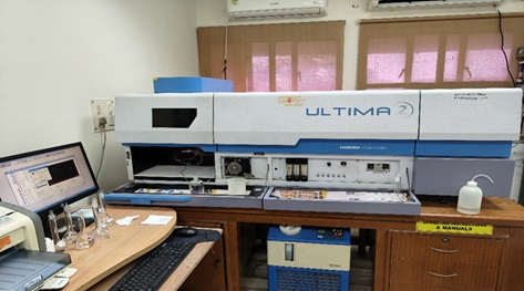 The chemistry laboratories are equipped with state-of-the-art equipment, including Pellet and Light Emitting Diode (LED) Fluorimeter, UV-VIS Spectrophotometer, Flame and Hydride Generator Atomic Absorption Spectrophotometer (F/HG-AAS), Graphite Furnace Atomic Absorption Spectrophotometer (GF-AAS), and Inductively Coupled Plasma Optical Emission Spectrometer (ICP–OES) and Microwave Assisted Digestion System (MDS). Additionally, the headquarters laboratory is equipped with a High Resolution Continuum Source Atomic Absorption Spectrophotometer (HR-CS-AAS). The laboratories in Hyderabad and Jaipur are equipped with Ion Chromatographs, while those in Hyderabad, Bengaluru, and Jaipur are equipped with Carbon-Sulfur (C-S) Analyzers. Moreover, the Hyderabad facility has a gas chromatograph system for helium analysis and a Class 10,000 clean room designed for ultra-trace analysis.